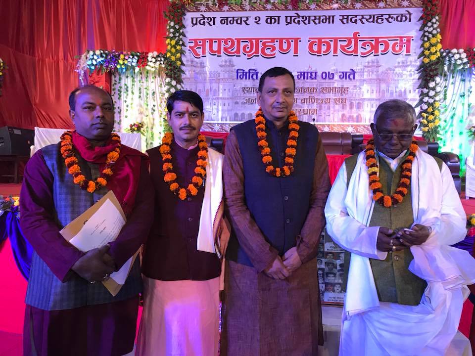 प्रदेशसभा १ को शपथग्रहण कार्यक्रम विराटनगस्थित वीरेन्द्र सभागृहमा प्रदेश प्रमुख डा गोबिन्द सुब्बाले सपथ गराए ।