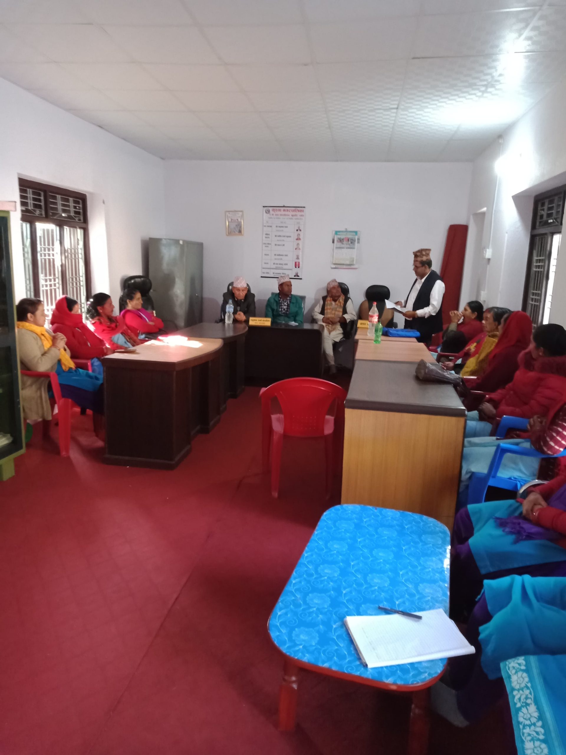 कार्यक्रम स्वास्थ्य व्यवस्थापन समितिका अध्यक्ष तथा वडा अध्यक्ष यदूनाथ शर्मा वास्तोलाको अध्यक्षता,स्वागत सिनियर अनमी गिता शर्माले गर्नुभएको थियो भने कार्यक्रमको संचालन खुर्कोट स्वास्थ्यचौकीका प्रमूख टेकनाथ सूवेदीले गर्नुभएको थियो । कार्यक्रममा वडामा रहेका सवै महिला स्वस्थ्य स्वयम सेविका,स्वास्थ्य व्यवस्थापन समितिका सदस्यहरुको उपस्थिति रहेको थियो ।