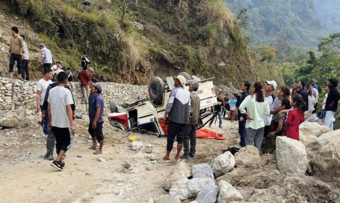 छिनखोलातर्फ जाँदै गरेको ग १ ज ६४७० नम्बरको जिप शनिबार अपराह्न करिब साढे ४ बजे उकालोको घुमाउरो सडकबाट करिब ५० मिटर तल खसेको प्रहरीले जनाएको छ।